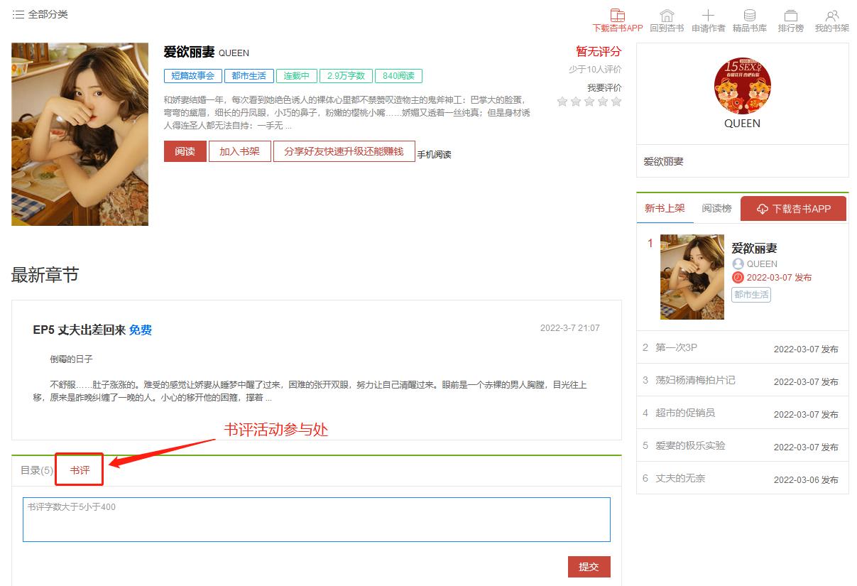 [互动交流] [书吧活动]好书限免分享 第22期 《爱欲丽妻》2022年4月11日 更新至 EP73 全文完结 |