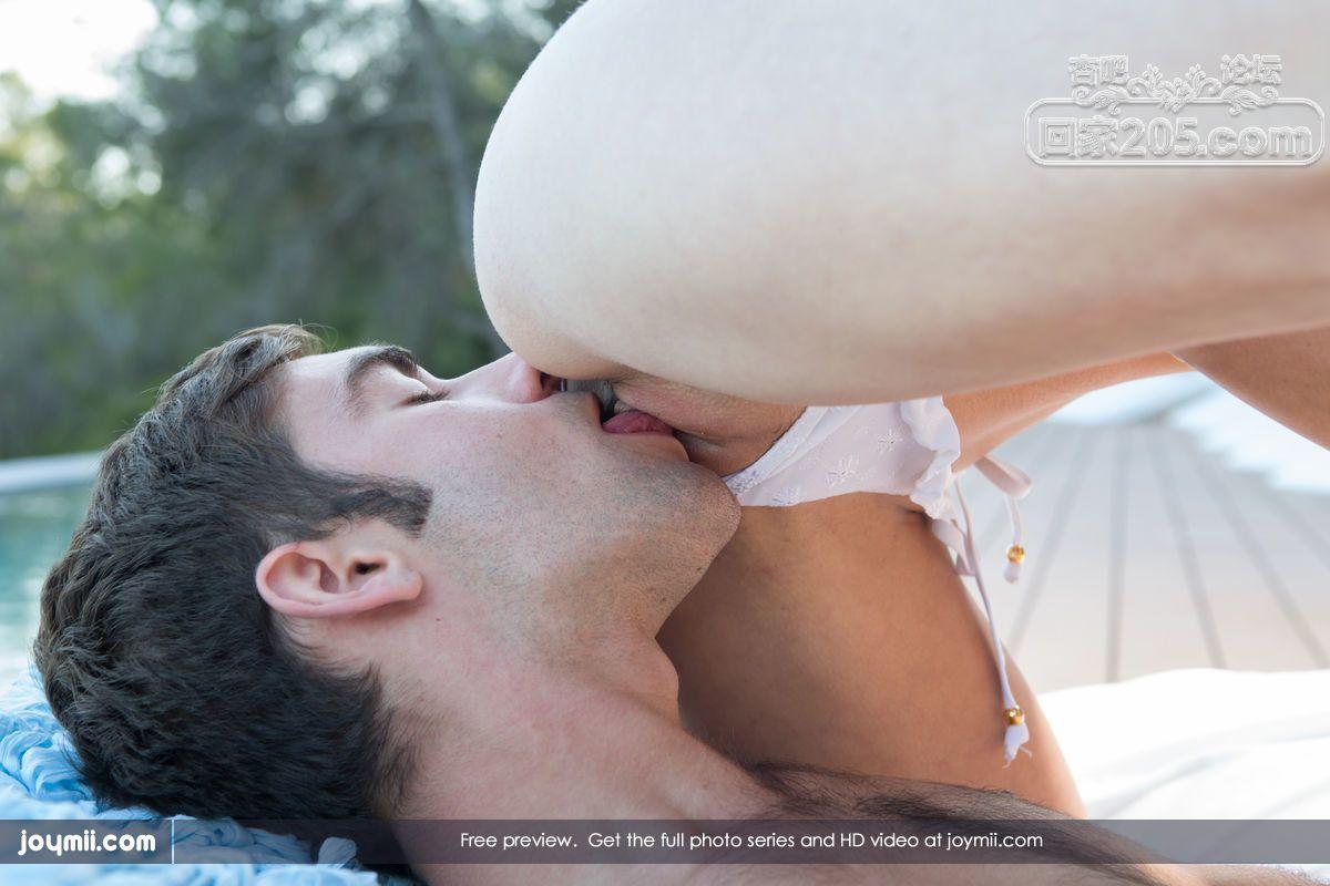 金色长发美少妇户外泳池白色大床上口交插穴【16P】