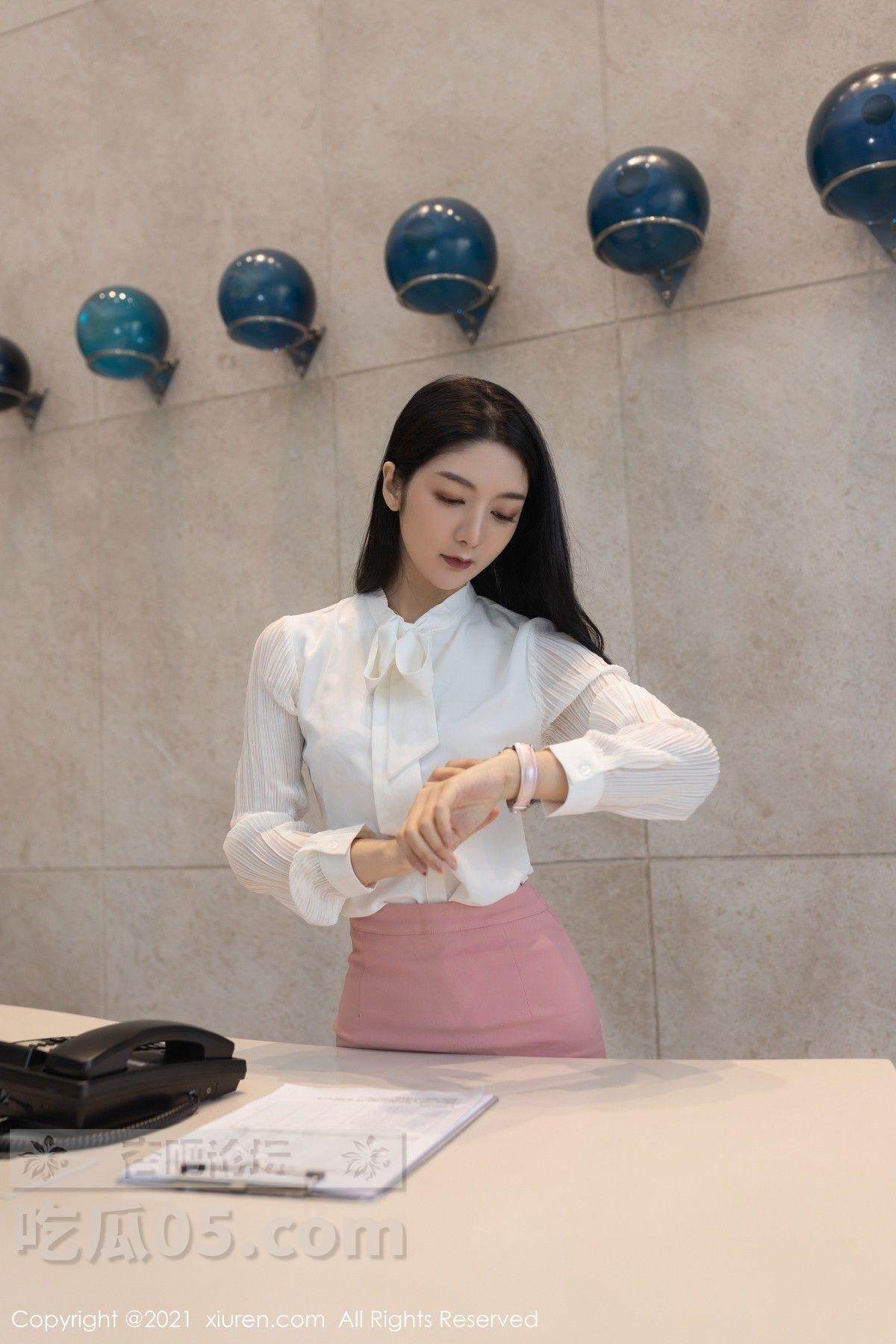 [美腿翘臀] 女神Angela小热巴前台小姐姐主题蕾丝内衣配肉丝裤袜诱惑写真【50P】 |