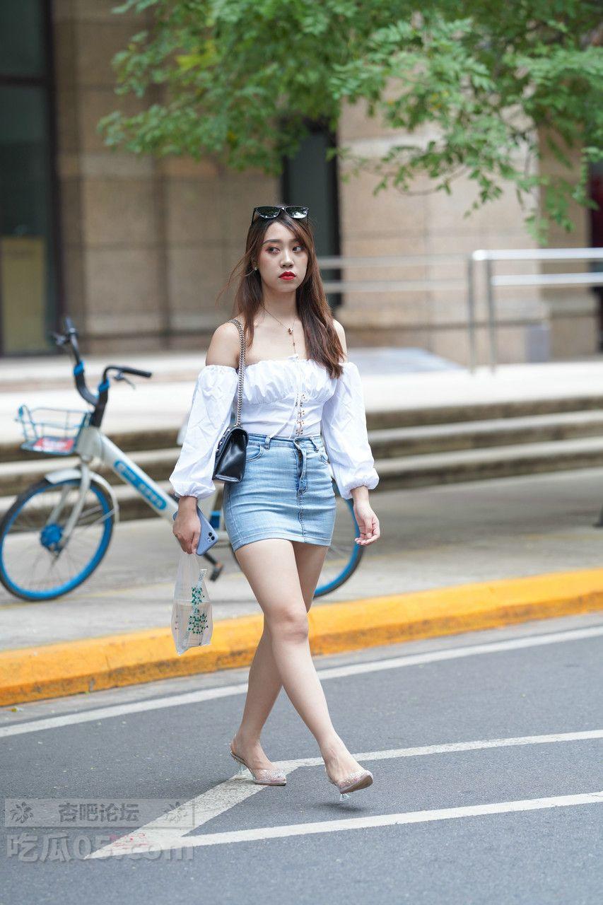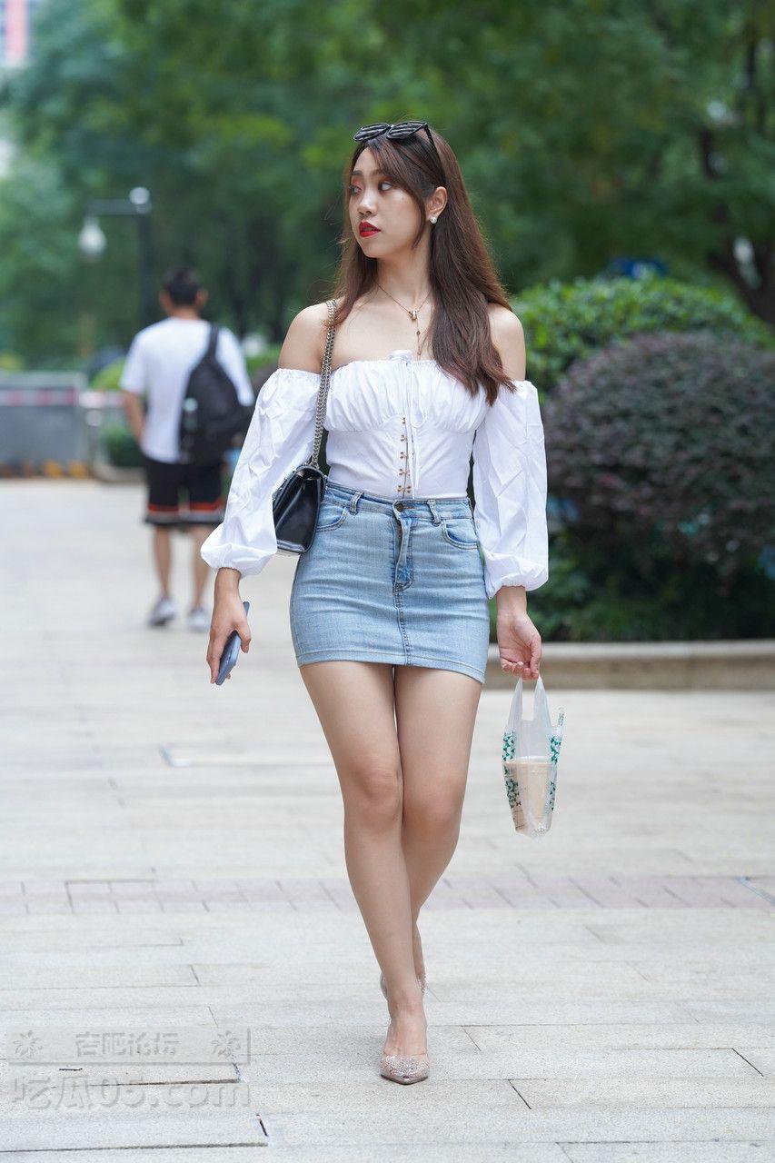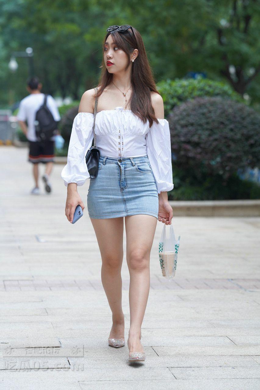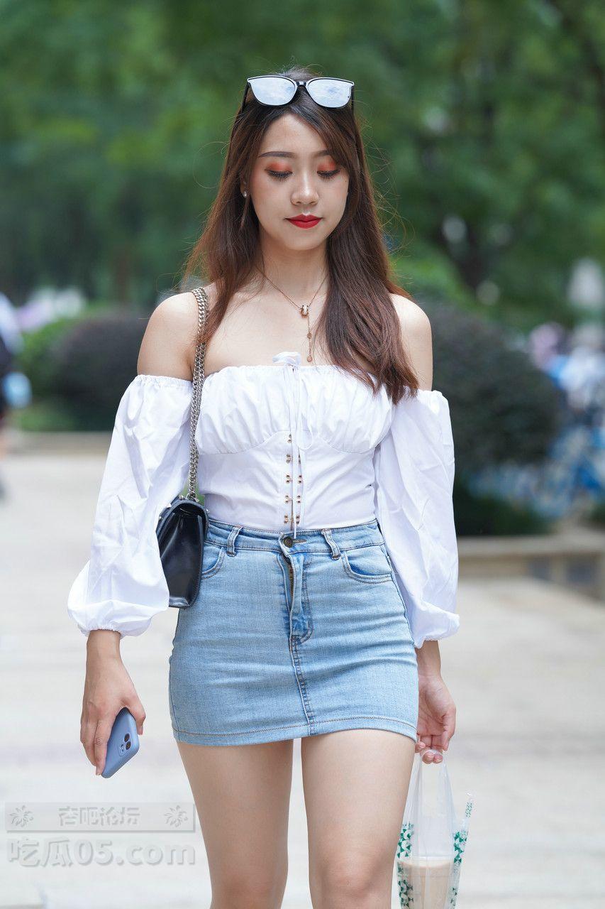 [街拍] 纯欲风来袭!紧身包臀牛仔裙+露肩白上衣,打造夏日性感慵懒范儿【50P】 |