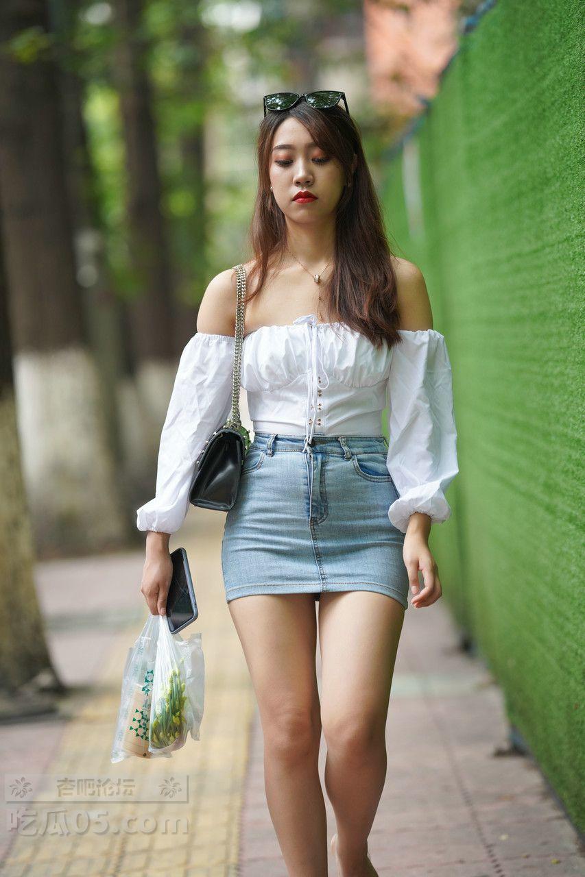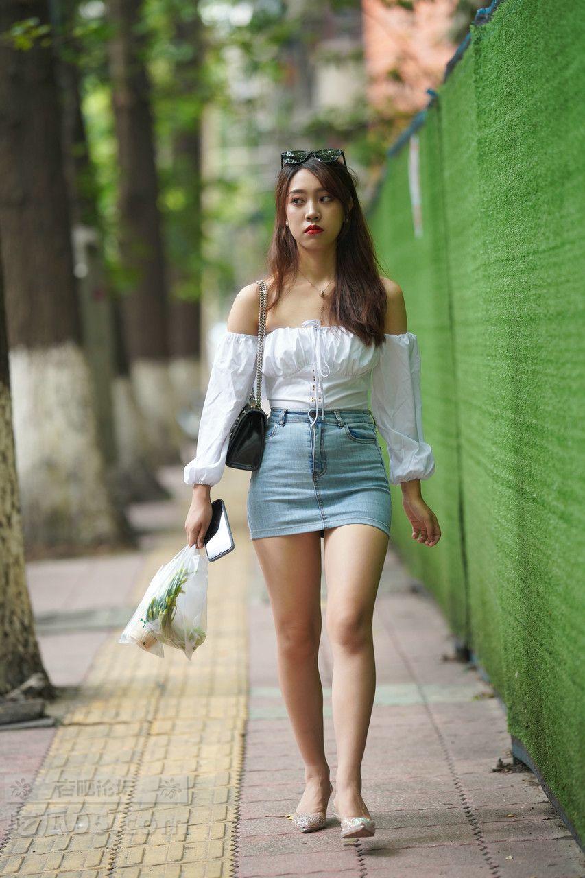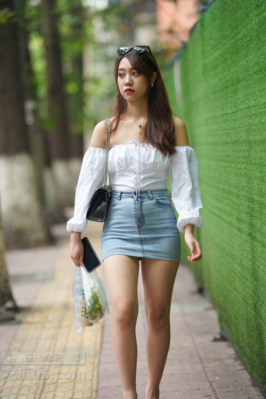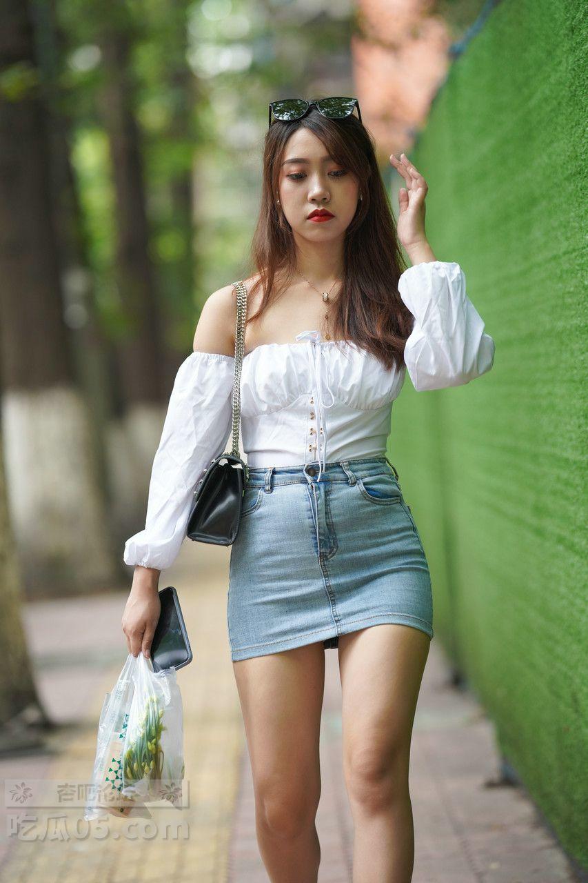 [街拍] 甜辣少女风穿搭:白色抹胸上衣+蓝色牛仔包臀裙,活力又显身材【31P】 |