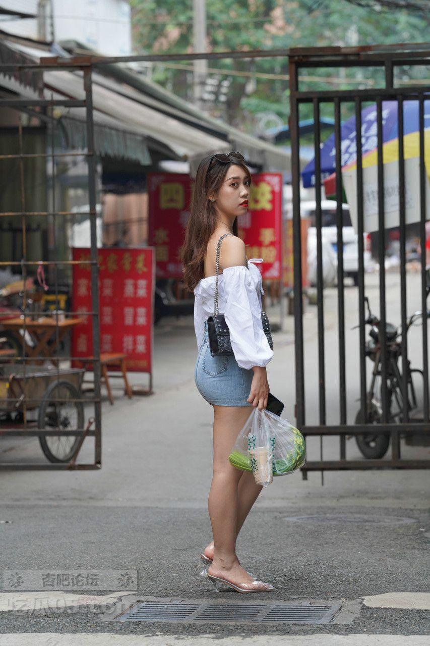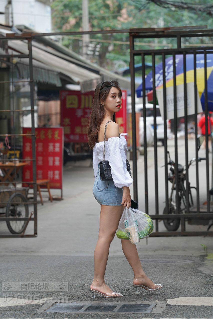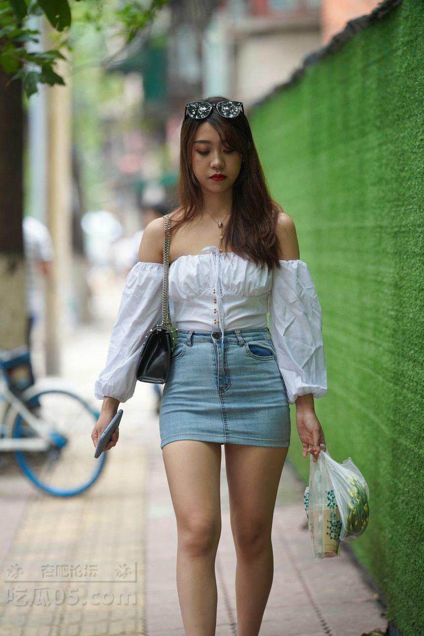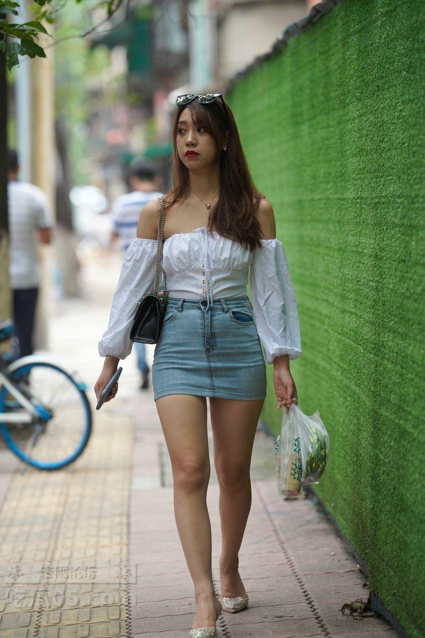 [街拍] 甜辣少女风穿搭:白色抹胸上衣+蓝色牛仔包臀裙,活力又显身材【31P】 |