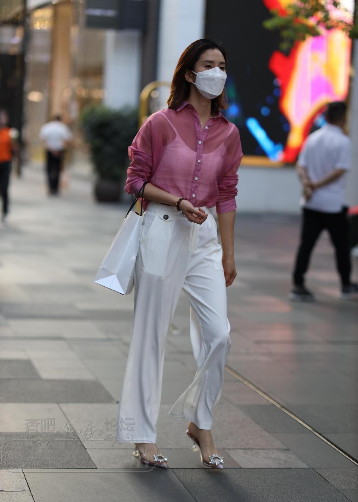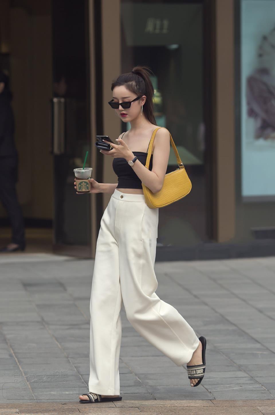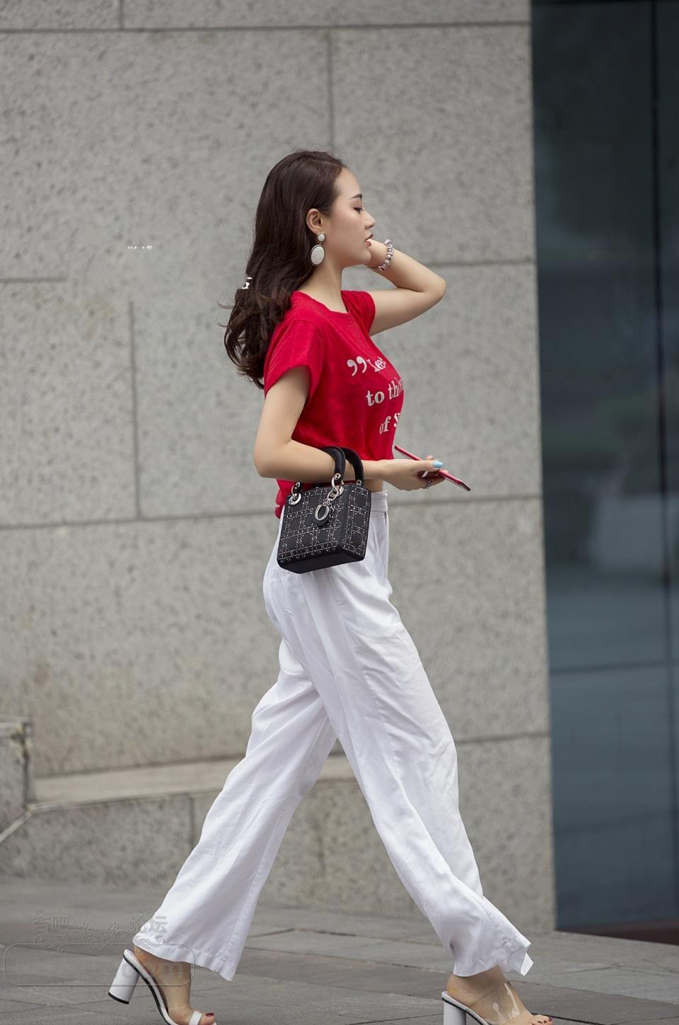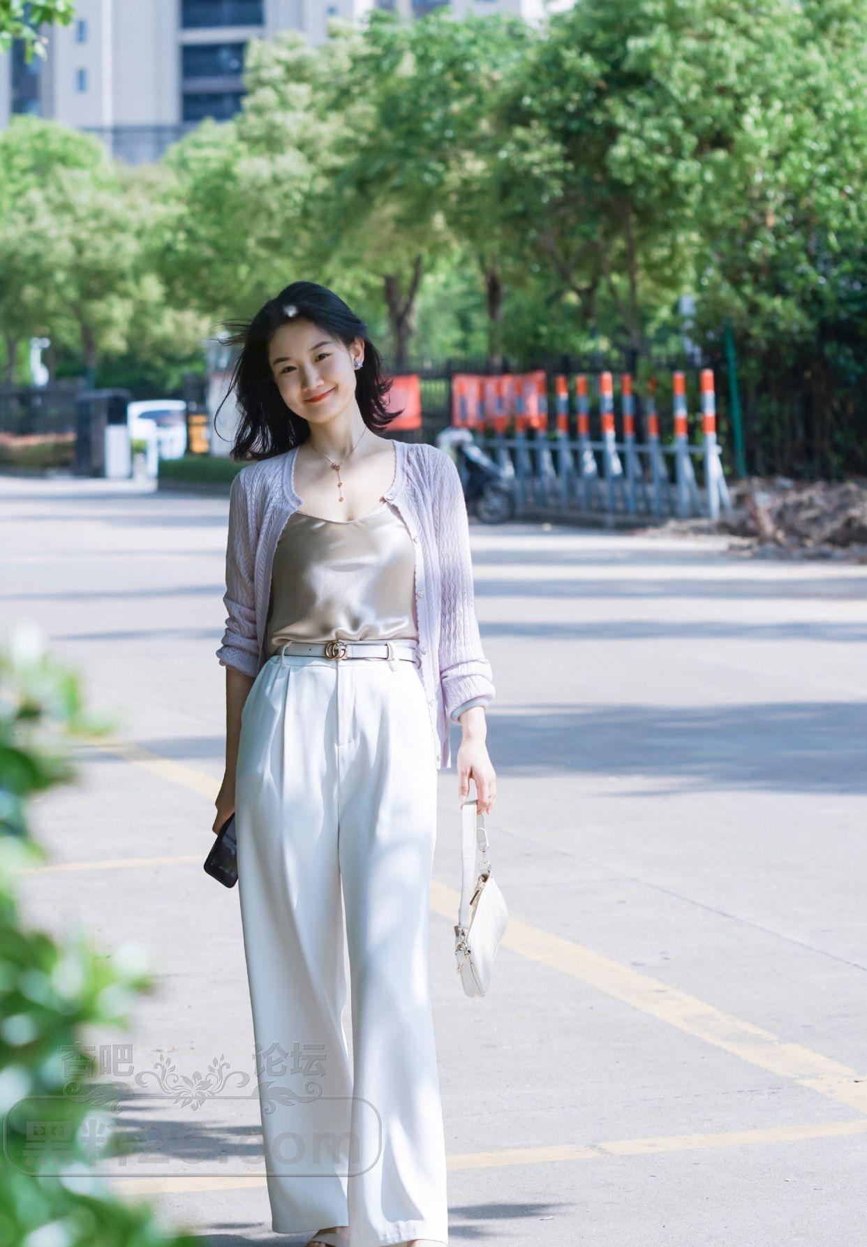 美女白色舒适宽松长裤这样穿真好看 好迷人【16P】