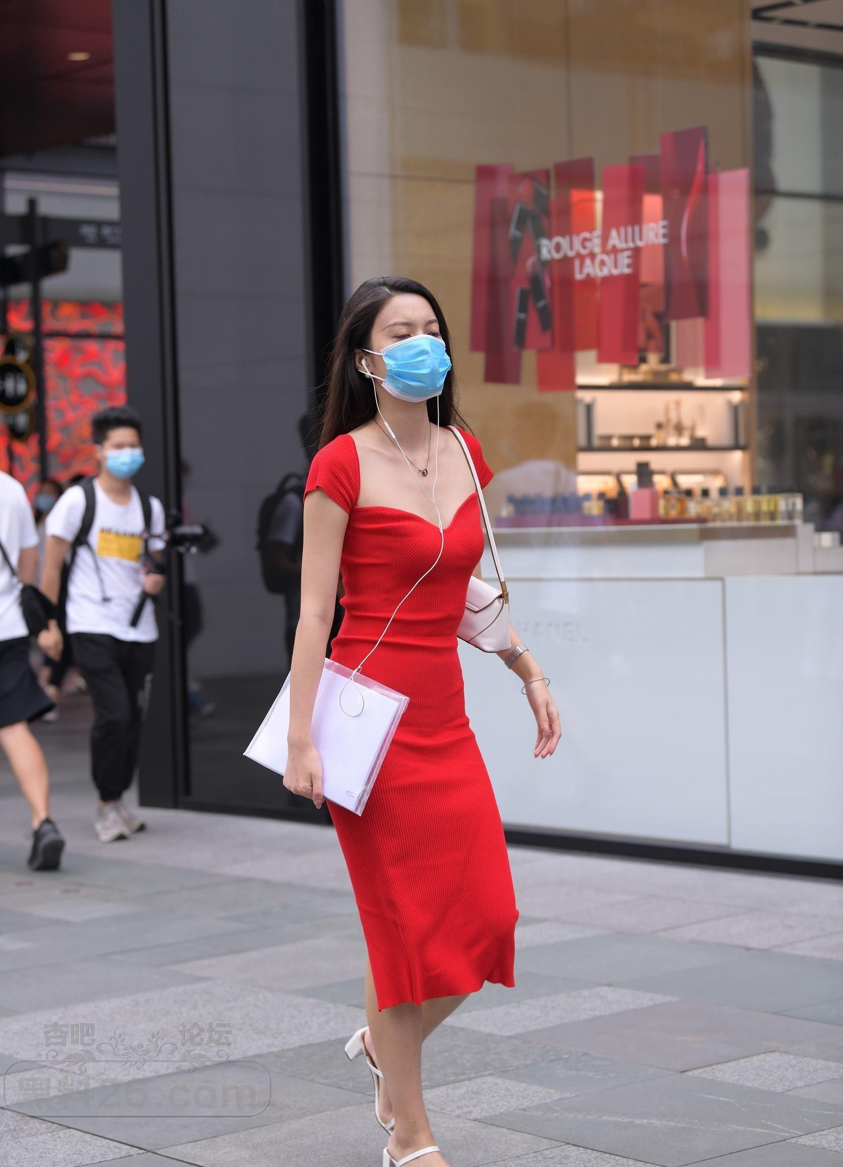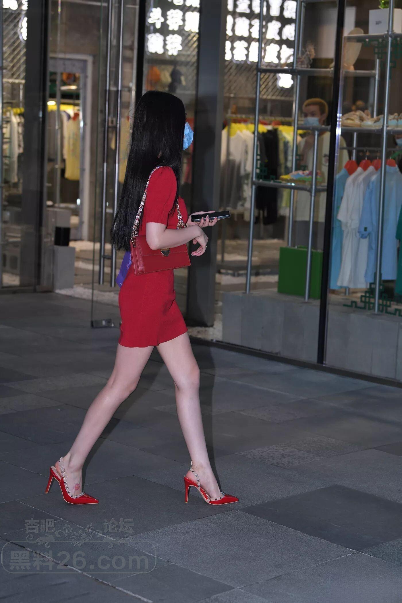 街拍非常漂亮的红色连衣裙美女,肤白腿美身材好【19P】