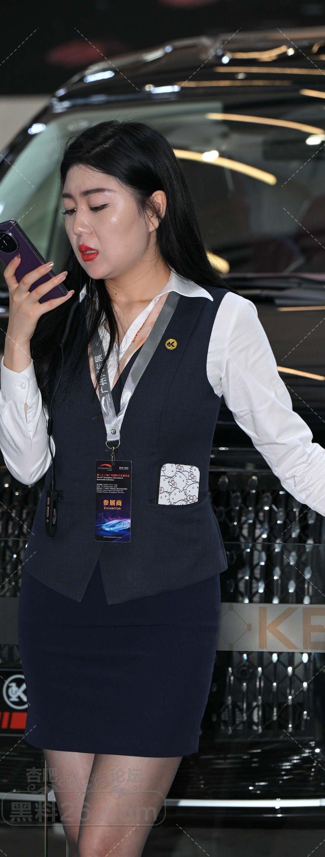 深蓝色马甲短裙工作服美女售车员手机练习客户【10P】