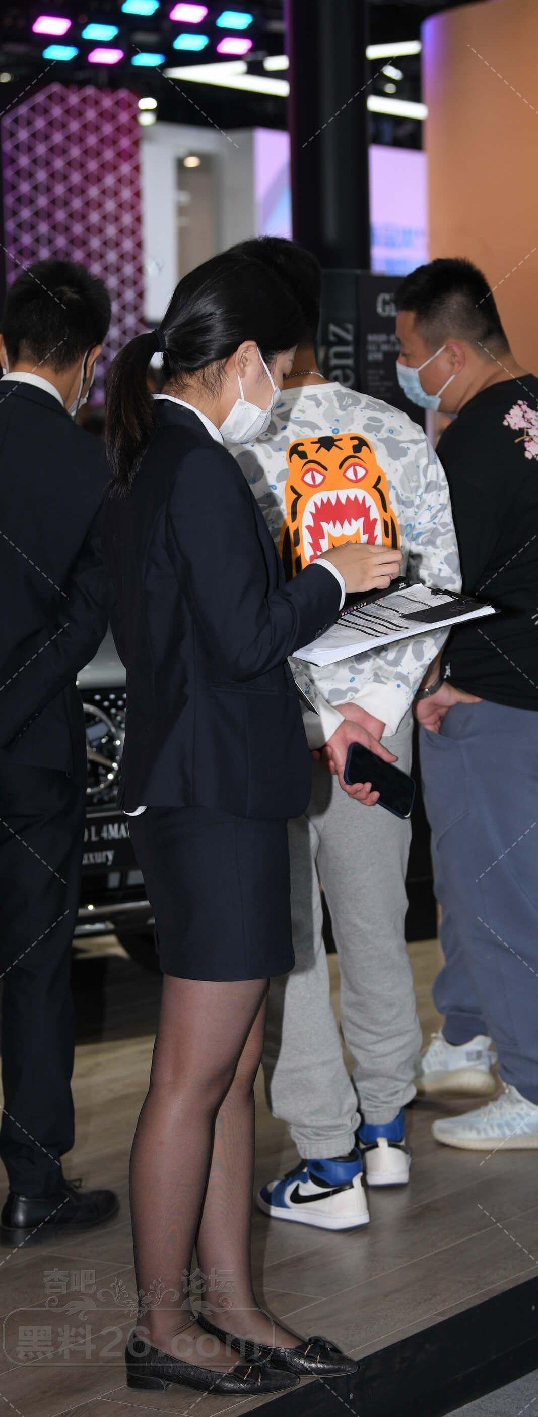 深蓝色制服短裙马尾美女售车员黑丝美腿诱人【10P】