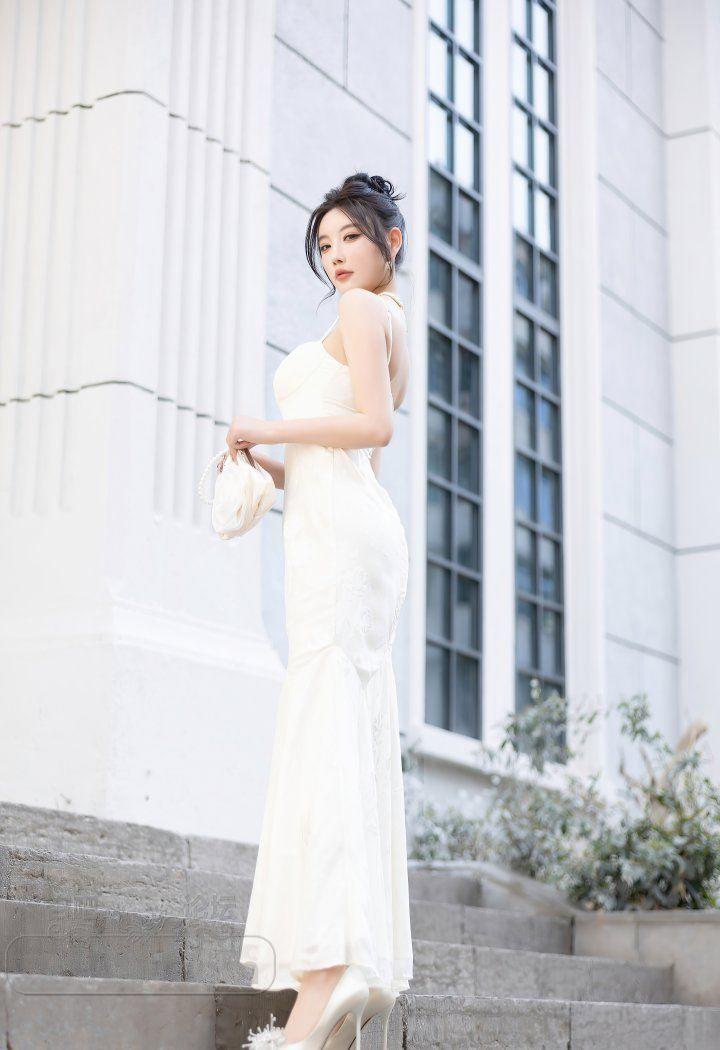 成熟女郎杨晨晨白色抹胸长裙玉乳半露香艳诱人【30P】