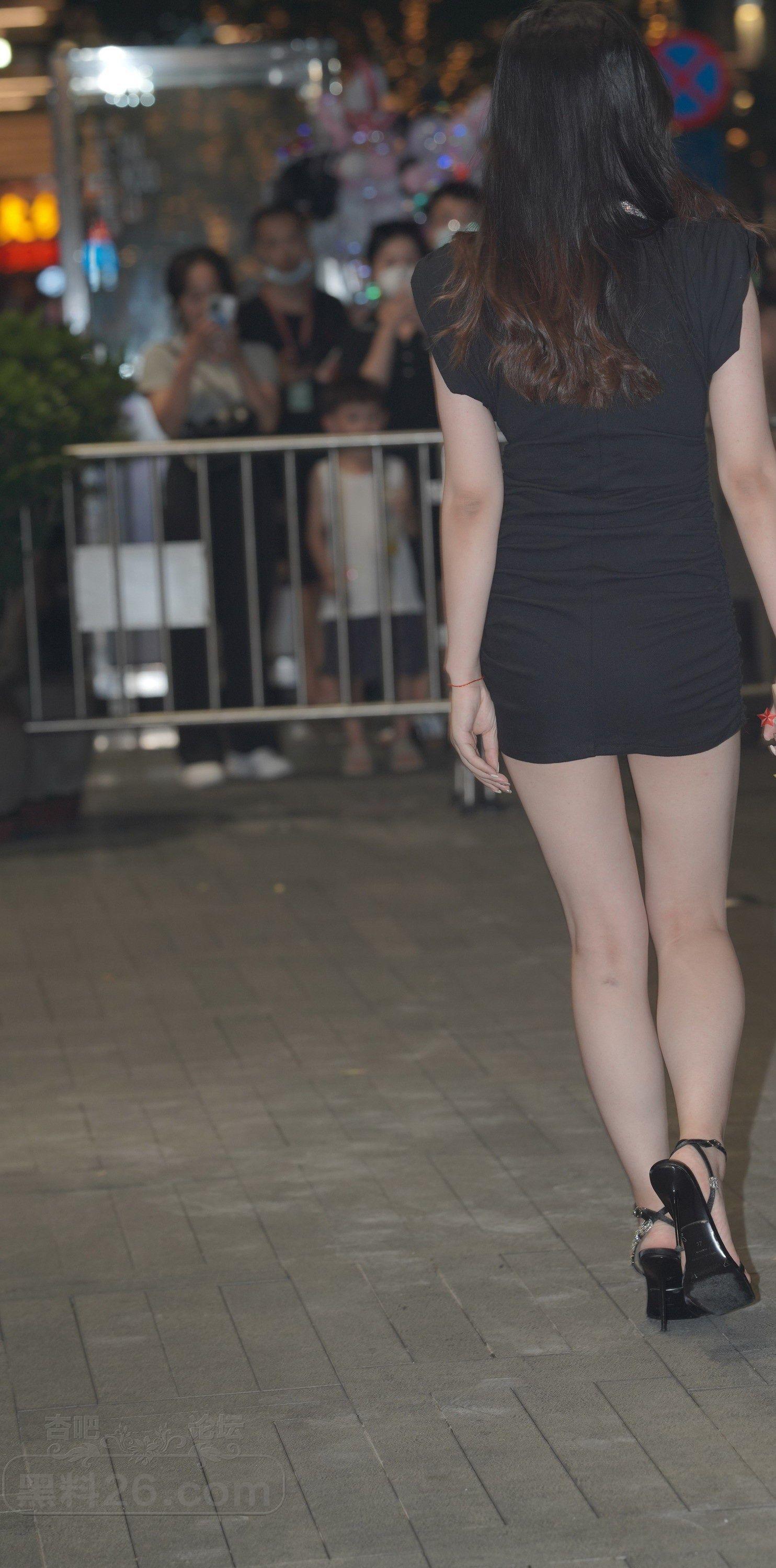 深蓝色无袖紧身短裙长发美女夜晚出来逛街【10P】