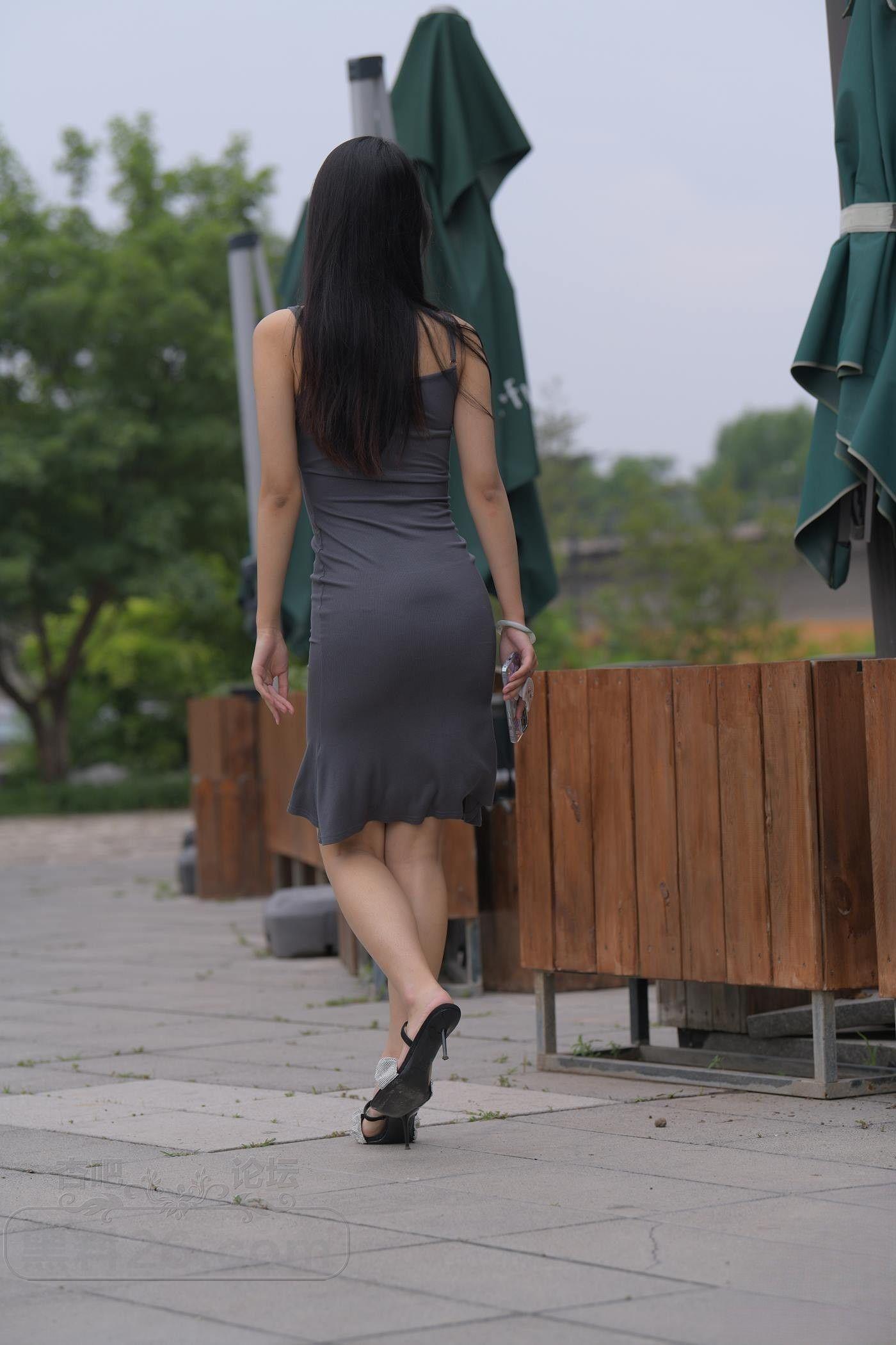 时尚灰色吊带长裙美女秀出曼妙身姿,白皙长腿,风情妩媚【19P】