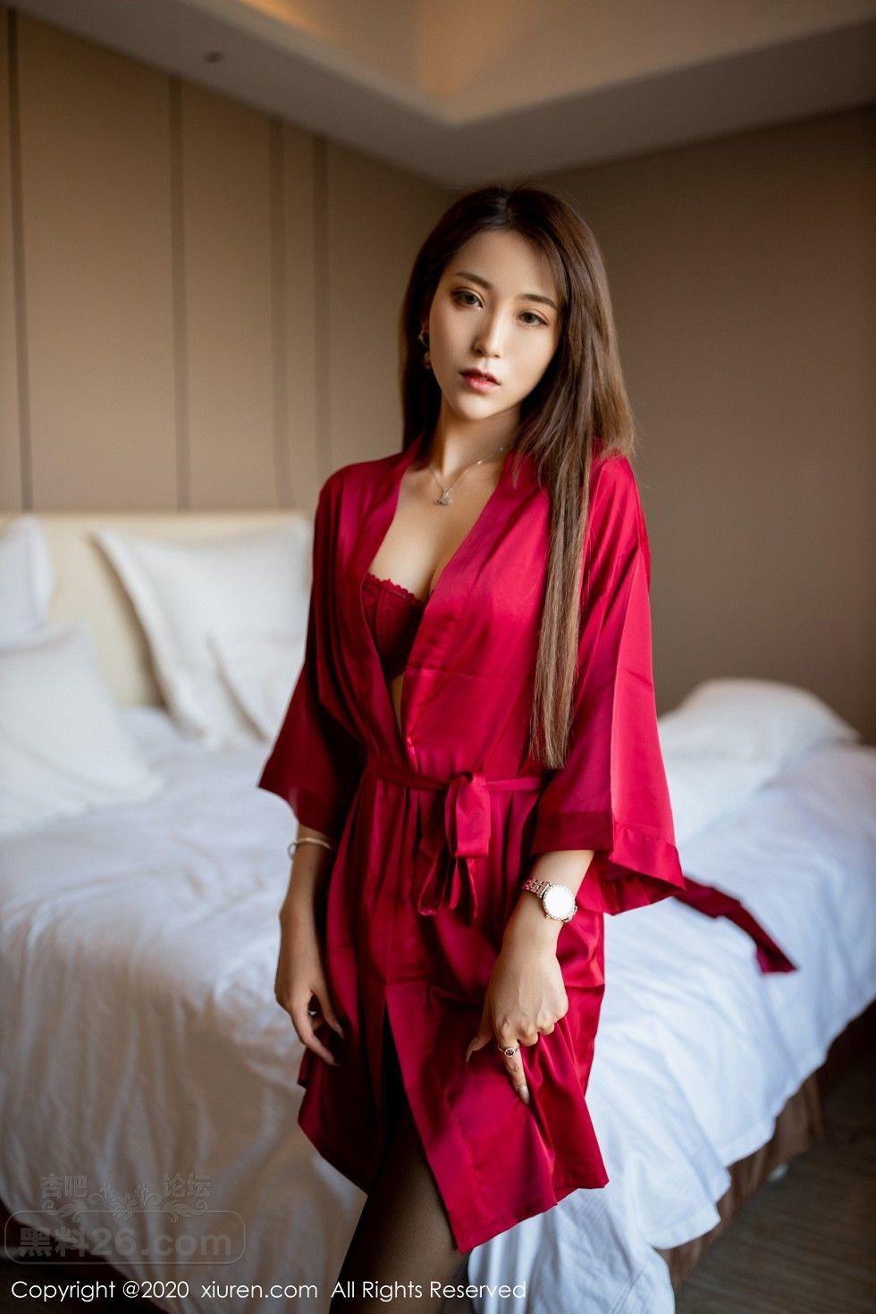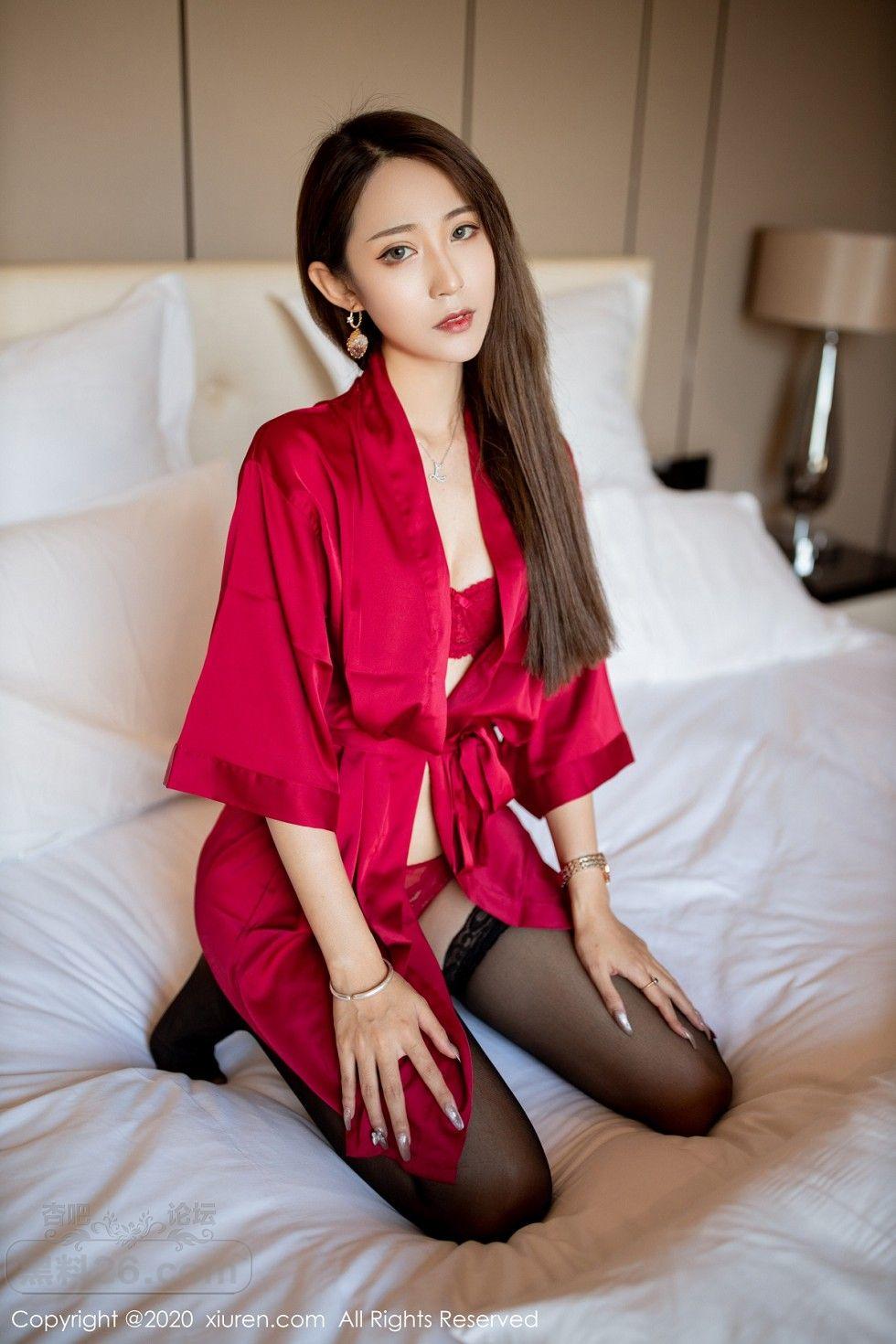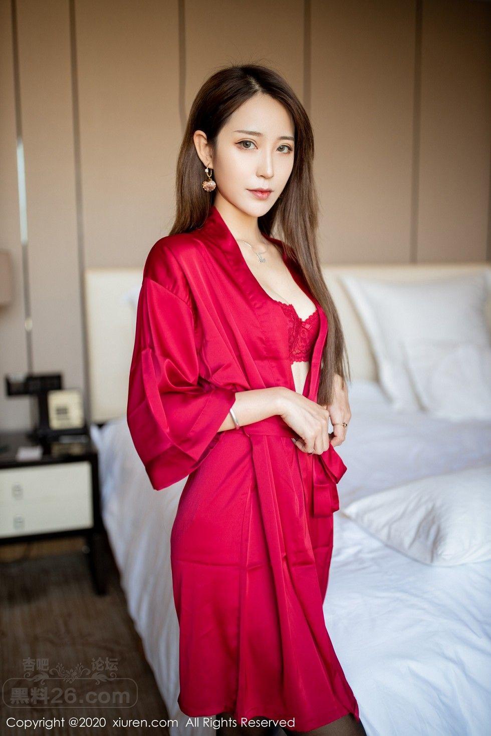 [美腿翘臀] 丽质模特周慕汐baby私房猩红睡衣露性感内衣配黑丝袜极致魅惑写【50P】 |