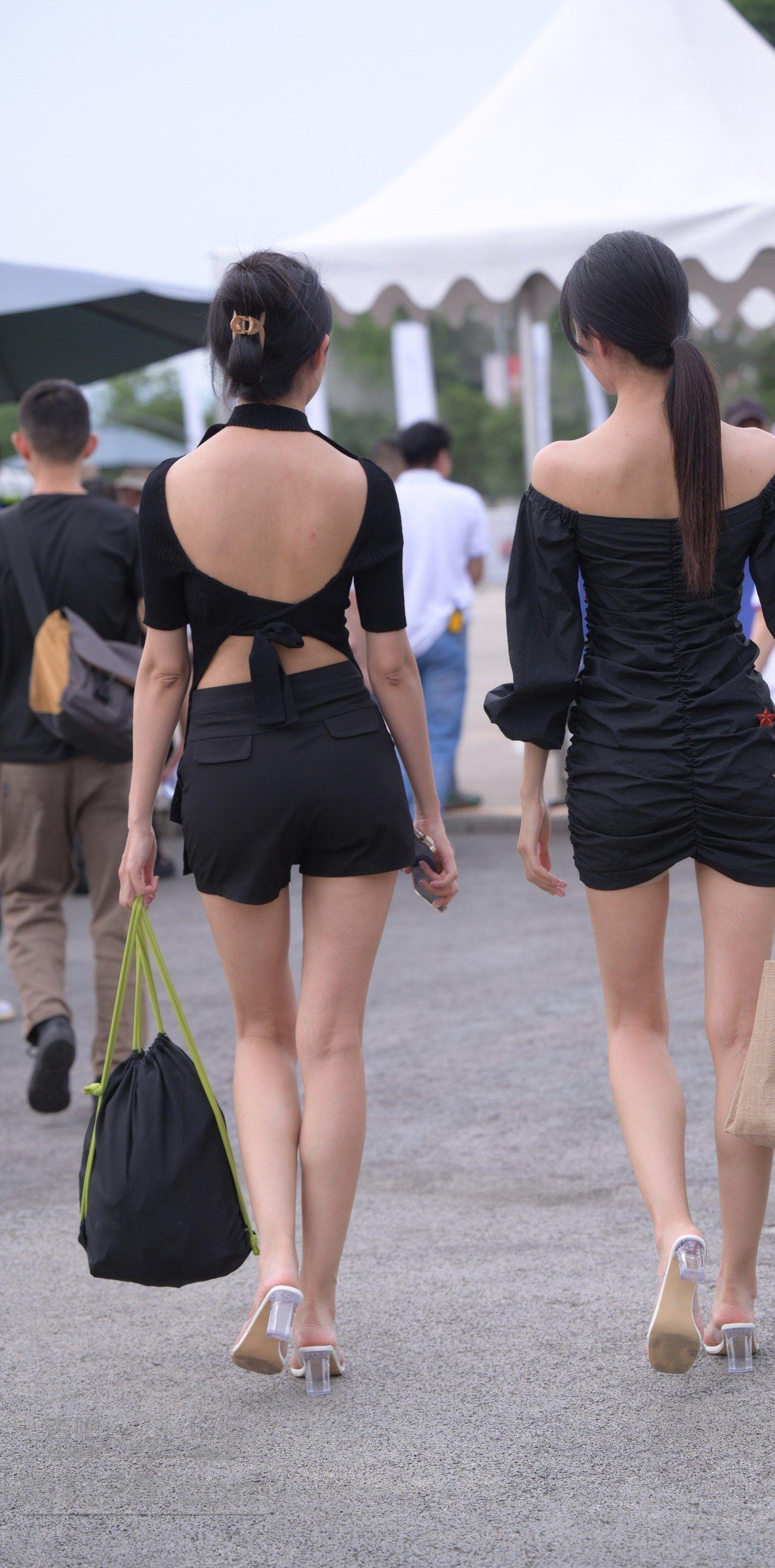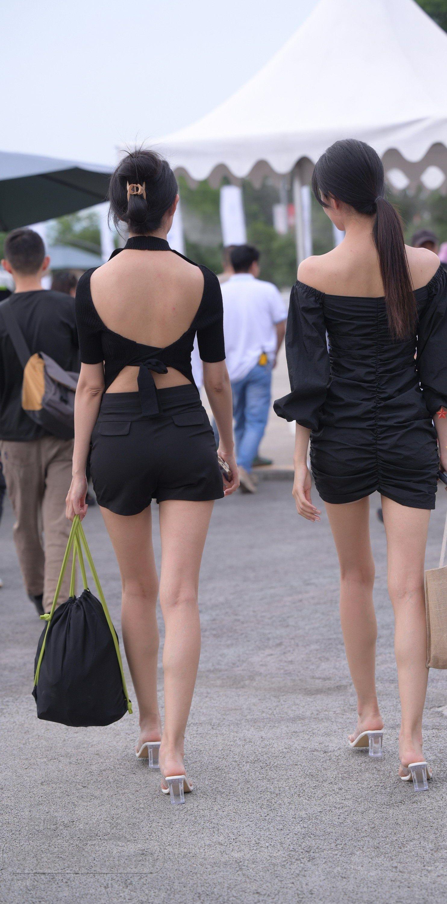 黑色短袖露背上衣黑色短裤美女白皙大长腿馋人【10P】